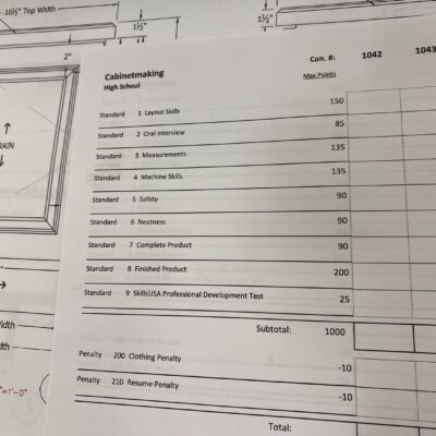 Judge’s scorecard for the Cabinetmaking Competition at 2025 SkillsUSA